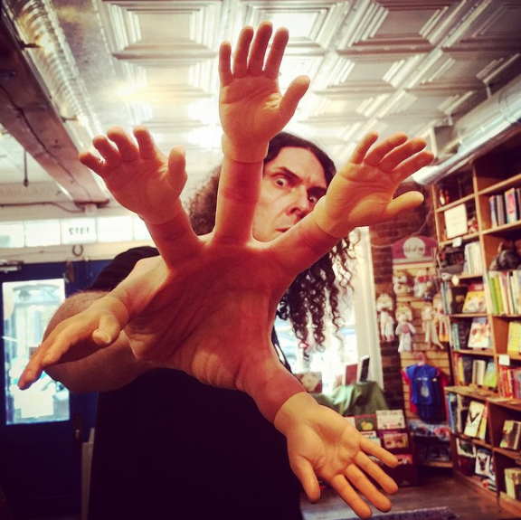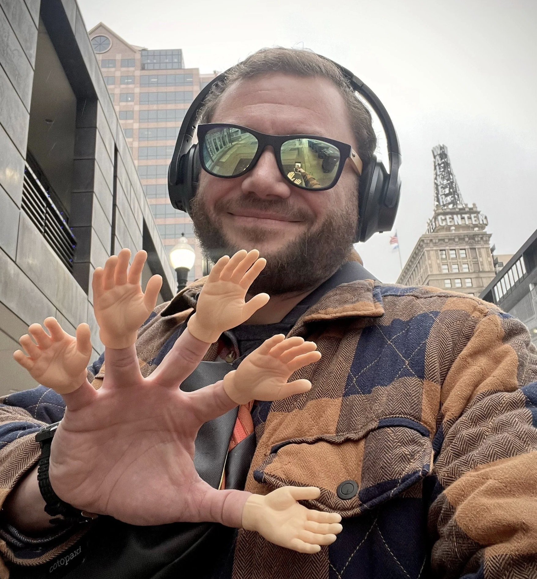 I invented Finger Hands for Archie McPhee in 2014. They became an instant hit and remain one of the most popular products in company history, with over a dozen spinoff products. They have reached their little fingertips far into pop culture, which has been a fun ride. I designed them to look like miniature versions of my own hands, with the same palm lines and fingerprints. I’m proud of them and the joy they have contributed to the world. I love that they help inspire additional creativity and I love to see how people play with them.
